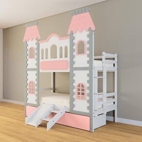 Diferenciais: Castelo com fechamento em MDF, 02 Gavetas, Kit Escada/Escorregador, Montagem Reversível da Escada ( lado direto / Lado esquerdo)