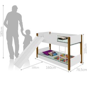 CLASSIFICAÇAO DA CAMA: Infantil | TIPO DE CAMA: Solteiro | GARANTIA DO FABRICANTE: 3 | COMPRIMENTO PRODUTO COM EMBALAGEM (CM): 152 | CONTEÚDO DA EMBALAGEM: 1 Beliche | CORES DO PRODUTO (FILTRO DE CORES): Branco | COR PREDOMINANTE: Branco | DESCRIÇÃO DO TAMANHO: Altura: 100 Cm Largura: 76,5 Cm Comprimento: 160 Cm | ESTADO DE ORIGEM: SP | ALTURA DO PRODUTO (CM): 100 | LARGURA DO PRODUTO (CM): 76 | LARGURA PRODUTO COM EMBALAGEM (CM): 40 | MARCA: CASAH | MATERIAL PARA FILTRO: MDF | MATERIAL PRINCIPAL: MDF | MODELO: Beliche Infantil Branco e Mel com Escorregador | PESO DO PRODUTO (KG): 38,8 | PESO PRODUTO COM EMBALAGEM (KG): 39,6 | PRODUTO PRECISA DE MONTAGEM?: Sim, a montagem é simples mas sugerimos a contratação do nosso de montagem (para os CEPs em que o está disponível) ou de algum experiente de sua preferência | INSTRUÇÕES/CUIDADOS: Limpar com pano macio e seco, não utilizar produtos abrasivos. | ALTURA DO PRODUTO COM EMBALAGEM (CM): 73 | COMPRIMENTO DO PRODUTO (CM): 160