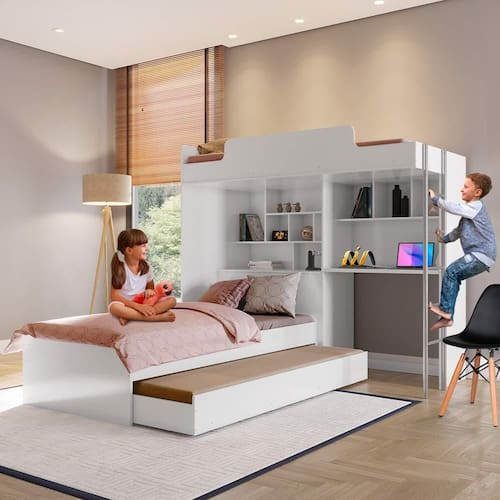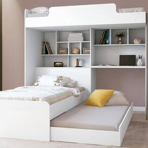 Itens Inclusos: 1 módulo com cama superior, 1 cama, 1 cama auxiliar.