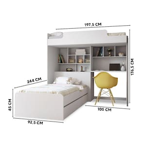 Dimensões do Produto:Largura 197,5 cm; Profundidade 92,5cm; Altura 176,5cm; Prufundidade com a cama 244cm;