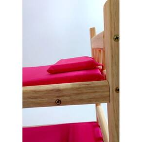 Com medidas de 60 cm de comprimento, 50 cm de altura e 31 cm de largura, essa beliche é ideal para acomodar as bonecas de forma segura e confortável. Acompanha também 02 colchões com travesseiros nas cores pink, para deixar as bonecas ainda mais confortáveis.