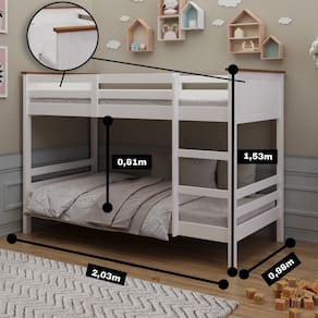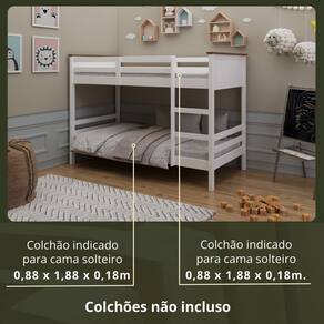 Dimensões do beliche de solteiro montado: Comprimento (cm): 198 Altura (cm): 153 Largura (cm): 98