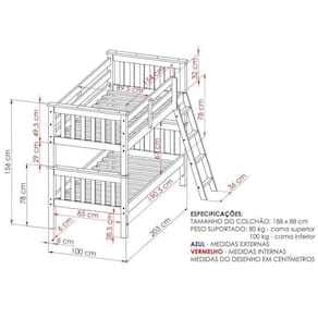 O Beliche de Solteiro Madeira Maciça para Colchão 88 x 188 cm Multimóveis CR35206 é produzido em madeira maciça de pinus com acabamento em pintura PU, combinando alta qualidade, durabilidade e facilidade na limpeza. Além disso, suporta até 80kg na cama superior (possui grades de proteção) e 100kg na cama inferior, garantindo segurança e tranquilidade para as noites de sono. Possui escada móvel (pode ser desmontada do beliche) e NÃO acompanha colchões (tamanho indicado dos colchões: 188 x 88 cm). Com design elegante e funcional, este beliche é a solução perfeita para otimizar o espaço do quarto.
