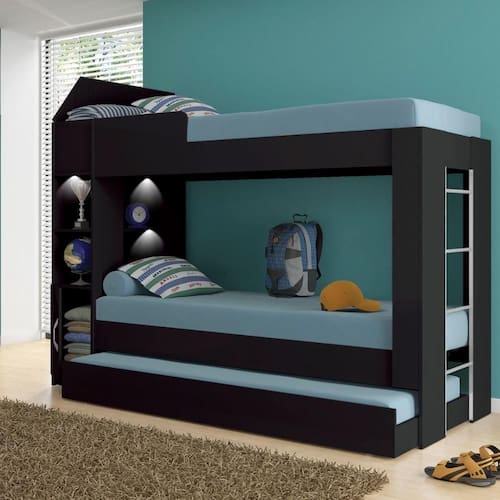 Beliche Ditália Cama Aux C/colchões+ Kit Luz Cm-15 Cor:preto Preto