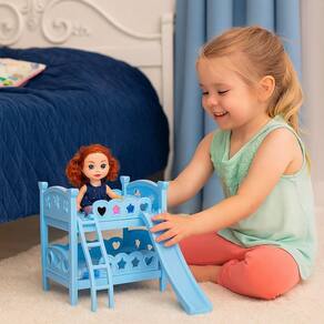 Beliche de Boneca Berco Duplo Com Escorregador Uma linda beliche com escorregador para deixar suas bonecas dormindo e se divertir com elas!! Possui design inspirado em modelos reais para a brincadeira ficar mais divertida. Formado por características realistas e requintadas, que tornam esta cama em miniatura fácil de promover o desenvolvimento da história da casa de bonecas e pode adicionar a diversidade ao cenário da casinha. Este produto é composto por: Material plástico de alta qualidade, é forte e durável. O comprimento da cama montada é de 31 cm, a largura é de 17,5 cm e a altura é de 28 cm. Características: Leve, compactoRequer montagemO Pacote Inclui: 1 x Cama de dois andares com escorregador de brincar. Marca: Não Informado