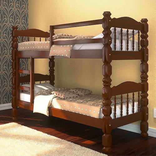 Beliches são ótimos aliados para quem quer poupar espaço. A Beliche Torneada de Madeira Maciça Super Resistente é uma ótima pedida para compor o seu dormitório. Além de ser um móvel funcional também reúne design e estilo, combina com diversos tipos de decorações. Confeccionado com madeira pinus, sua estrutura possui mais resistência e oferece mais segurança para as suas noites de sono. Características Gerais - Para Colchão 0.88 x 1.88 - Produto fabricado em 100% Madeira Maciça Pinus - Espessuras dos pés 0.8 x 0.8 cm - Grade Lateral maciça reforçada; - Possui Estrado Reforçado; - Exclusiva Grade de Segurança Proteção na parte lateral - Suporta no Máximo 100 kg distribuídos por cama - Possui um Ótimo Acabamento;. - Ripas e sarrafos do estrado em madeira maciça. - Indica - se na cama auxiliar colchões com máximo 14 cm de altura. - Produto versátil encaixa em vários ambientes. - Pode ser utilizado como duas camas de solteiro - Lindo design. - Torneada de Madeira Maciça - Não acompanha colchões Medidas aproximadas: Largura: 96 cm Comprimento: 2,04 m Altura: 1,54 cm Entre as barras: 75 cm Ótimo custo beneficio para casa de praia, casa de campo, pousa, hostel, hotel e afins Compre direto do distribuidor , atacadista.