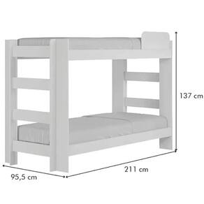 Beliche Florida para Colchão 188x88 Tigus Prático, confortável e compacto, é assim que o ambiente do seu quarto vai ficar com a Beliche Florida para Colchão 188x88 Tigus. Consequentemente produzida em cores neutras, para proporcionar um ambiente mais clássico e atual. Da mesma forma, a estrutura é feita em MDF, garantido mais resistência e durabilidade que só a Tigus Baby oferece.\nMEDIDAS\nAltura 137cm\nComprimento 211cm\nLargura 95,5cm\nCARACTERÍSTICAS\nFabricante Tigus\nModelo Beliche Florida\nGarantia 3 meses\nTipo de Produto Beliche\nAmbiente Quarto\nEstrutura MDF\nIndicado para Colchões 88cm\nAcabamento Pintura UV\nPossui Barra Protetora Sim\nNecessita Montagem Sim\nAcompanha Manual de Instalação Sim\nINFORMAÇÕES IMPORTANTES\nObjetos decorativos que porventura apareçam na foto, não acompanham o produto. Não nos responsabilizamos pela montagem/instalação dos produtos.\nMontagens, desmontagens e instalações são responsabilidades do cliente. Indicamos que contrate uma empresa de montagem ou um montador de sua confiança.\nAlém disso, favor verificar se os pés e acessórios estão dentro do forro inferior do produto. Em suma, todas as informações divulgadas sobre o produto são de responsabilidade do Fabricante.\nAs cores do produto podem variar de acordo com o seu monitor, a iluminação do ambiente em que você está e até mesmo a sua percepção visual. Além da cor, pequenos detalhes e acabamentos podem não ficar evidentes na foto, por isso as imagens são meramente ilustrativas