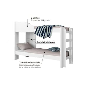 Material de Estrutura - MDF/MDP Tipo de Pintura - Ultravioleta Tipo de Acabamento da Pintura - Semi Brilho Tamanho da Cama - Solteiro Diferenciais das Camas - Escada Lateral - Proteção Lateral