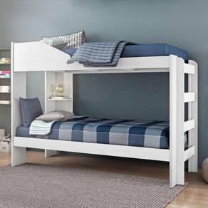 Estrutura MDP/MDF 12, 15, 18 e 25mm Acabamento/Pitura UV fosco Não se transforma em duas camas Medida entre as camas 0,78m Para colchão de 0,88 ( Não Acompanha Colchão) Prateleira porta objetos / Proteção antiqueda CAMA AUXILIAR NÃO ACOMPANHA O PRODUTO Suporta 80kg por cama Distribuído Garantia 03 meses