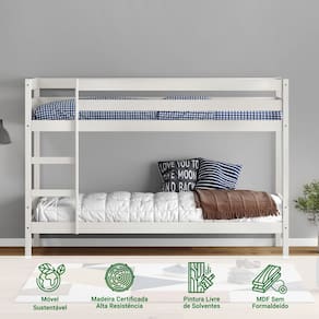 Beliche Felix possui grade de proteção integrada proporciona uma sensação adicional de segurança, permitindo que você desfrute de uma noite de sono tranquila e escada para facilitar a subida no beliche.
