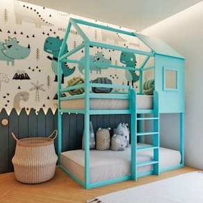 O Beliche Casinha Janelinha é ideal para otimizar espaço no quarto do seu filho, além de garantir noites mais aconchegantes e segura. O Beliche possui a cama inferior no modelo Montessori, próximo ao chão, possibilitando mais autonomia aos pequenos e segurança na hora de dormir. Estrutura da cama em madeira de reflorestamento de pinus sem nós para evitar o amarelecimento da pintura. Fechamento em chapa de MDF pintada na mesma cor da cama. A madeira passa por um processo de correção das imperfeições, recebe uma aplicação de primer, lixamento e pintura à pistola, este processo resulta em uma superfície lisa e um toque sedoso. Acompanha Cama Auxiliar: Não Acompanha Colchão: Não Altura do Estrado até o Chão: 90 cm Ambiente Principal: Quarto Infantil codigo_ean: 7909903347348 Complexidade da Montagem: Média: pode ser montado por mais de uma pessoa e/ou necessite de maior conhecimento para montagem Cor: Céu da Antártida Cor do Produto: Céu da Antártida Escala de Brilho: Semi-Brilho Informações Complementares: Suporta 110 kg em cada cama. Itens Inclusos: 1 Beliche com Fechamento, Kit Ferragens e Manual de Montagem Linha ou Coleção: Casinha Manual de Montagem e Instalação: https://product-hub-prd.madeiramadeira.com.br/856701/documents/cc849281-e784-4bb3-8cc4-6ec5bf87bcc000casibelichecasinha1880mm.pdf Material do Estrado: Pinus Material Principal: Madeira Maciça Montagem Flex: É possível escolher, no momento da montagem, a posição de fixação da casinha. Necessita Montagem: Sim Origem do Produto: Nacional Permite a Utilização de Cama Auxiliar: Não Peso: 75 kg Possui Baú: Não Possui Gavetas: Não Possui Pés: Não Possui Portas: Não Possui Prateleiras: Não Recomendações de Uso, Manutenção e Limpeza: O peso suportado é considerado distribuído sobre o colchão, Caso necessite de reaperto é importante que se faça, para a limpeza deve-se utilizar apenas pano levemente úmido com água, não utilizar lustra móveis. Sistema de Montagem: Parafusos e Cavilhas Suporta Até (kg): 110 kg Tamanho da Cama: Solteiro Tamanho do Colchão Indicado (L x C): 88cm x 188cm x 16cm Tipo de Cama: Beliche Tipo de Colchão: Solteiro Tipo de Estrado: Fixo Tipo de Madeira Maciça: Pinus