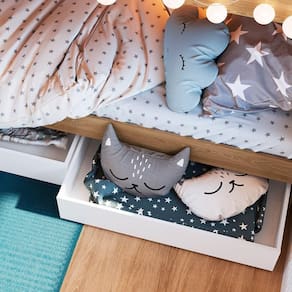 A Beliche Infantil conta com escadas laterais que garantem e praticidade, e cada degrau possui nichos integrados para facilitar a organização, otimizando ao máximo o espaço disponível. A escada pode ser montada tanto do lado direito quanto do esquerdo, adaptando-se perfeitamente ao layout do ambiente. Fabricada com materiais de alta qualidade, como MDP de 15 mm e suportes de madeira maciça, esta Beliche de Solteiro oferece estabilidade e resistência. Os gavetões com rodízios acrescentam ainda mais capacidade de armazenamento, mantendo o quarto sempre arrumado e funcional.