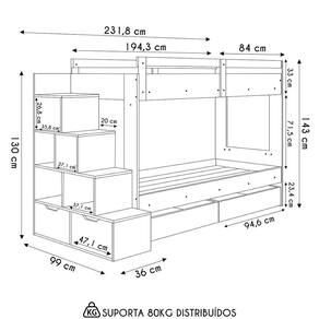 Conteúdo da Embalagem: 1 Beliche, 2 Gavetões.