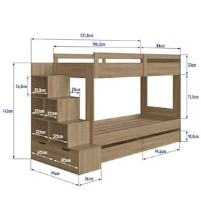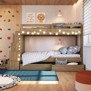 O quarto da sua ou suas crianças ficará ainda mais charmoso com a nossa Cama Beliche da Completa Móveis. Com escadas laterais, uma praticidade para a subida e descida do seu pequeno. Em cada degrau, nichos que facilitam e otimizam o espaço. Nestes nichos, podes guardar e organizar vários brinquedos, livros e outros acessórios. Nos últimos dois nichos rentes ao chão, duas gavetas que acompanham o produto e o tornam ainda mais completo! Permite a montagem da escada lateral tanto do lado direito quanto lado esquerdo. Para completar e sofisticar ainda mais o produto, acompanha dois gavetões inferiores, podendo assim armazenar o restante das coisas do quarto, sejam roupas de cama, outros brinquedos, etc. Opcional em várias combinações de cores, confira! Produto 100% MDP em 15 milímetros de espessura! O produto é entregue desmontado. Use um pano levemente umedecido com água, seguido de pano seco. Não utilize produtos químicos ou abrasivos.