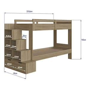 Beliche Infantil com Escada, Nichos e Gavetas BI001 Linha Infanto Aveiro OAK Completa Móveis - Marrom