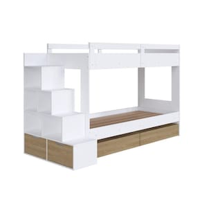 O quarto da sua ou suas crianças ficará ainda mais charmoso com a nossa Cama Beliche. Com escadas laterais, uma praticidade para a subida e descida do seu pequeno. Em cada degrau, nichos que facilitam e otimizam o espaço. Nestes nichos, podes guardar e organizar vários brinquedos, livros e outros acessórios. Nos últimos dois nichos rentes ao chão, duas gavetas que acompanham o produto e o tornam ainda mais completo! Permite a montagem da escada lateral tanto do lado direito quanto lado esquerdo. Para completar e sofisticar ainda mais o produto, acompanha dois gavetões inferiores, podendo assim armazenar o restante das coisas do quarto, sejam roupas de cama, outros brinquedos, etc. Opcional em várias combinações de cores, confira! Acabamento da Gaveta: Finish Foil Acompanha Cama Auxiliar: Não Acompanha Colchão: Não Altura do Estrado até o Chão: 32 cm Ambiente Principal: Quarto Infantil codigo_ean: 7909903319598 Complexidade da Montagem: Média: pode ser montado por mais de uma pessoa e/ou necessite de maior conhecimento para montagem Cor: Branco/Aveiro Oak Cor do Produto: Branco/Aveiro Oak Escala de Brilho: Fosco Escala de Brilho da Gaveta: Fosco Gaveta com Chave: Não Itens Inclusos: 1 Cama Beliche, Kit Ferragens e Manual de Montagem Linha ou Coleção: Hero Manual de Montagem e Instalação: https://product-hub-prd.madeiramadeira.com.br/852745/documents/42484f28-fbfb-4a69-9ba8-189056b49b5eialdescritivo7899671469253.pdf Material da Gaveta: MDP Material do Estrado: MDF Material Principal: MDP Necessita Montagem: Sim Origem do Produto: Nacional Permite a Utilização de Cama Auxiliar: Sim Peso: 107 kg Peso Máximo por Gaveta: 5 kg Possui Baú: Não Possui Pés: Não Possui Portas: Não Possui Prateleiras: Não Recomendações de Uso, Manutenção e Limpeza: Use um pano levemente umedecido com água, seguido de pano seco. Não utilize produtos químicos ou abrasivos. Sistema de Montagem: Sistema de montagem via parafusos, cavilhas e porcas elípticas. Suporta Até (kg): 80 kg Tamanho do Colchão Indicado (L x C): 78cm x 188cm Tipo de Cama: Beliche Tipo de Colchão: Solteiro Tipo de Corrediça da Gaveta: Metálica Telescópica Tipo de Estrado: Fixo Tipo de Puxador da Gaveta: Embutido undefined: 852743