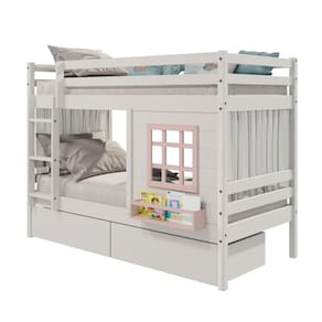 Diferenciais: Escada Fixa, Grade de Proteção Dupla, Janela com fechamento em MDF e Prateleira para Livros e Decoração, 02 Gavetas, Cortina.