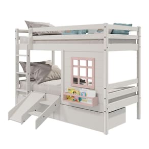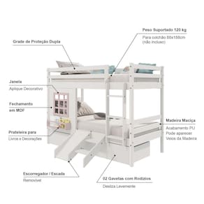 Diferenciais: Escada Fixa, Grade de Proteção Dupla, Janela com fechamento em MDF e Prateleira para Livros e Decoração, 02 Gavetas, kit Escada/ Escorregador.