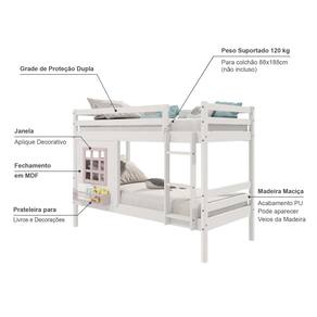 Diferenciais: Escada Fixa, Grade de Proteção Dupla, Janela com fechamento em MDF e Prateleira para Livros e Decoração.