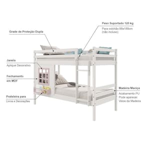 Material Principal: Madeira Maciça | Cor: Branco | Necessita Montagem: Sim | Acompanha Colchão: Não | Tipo de Cama: Beliche
