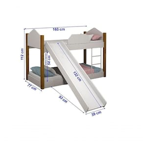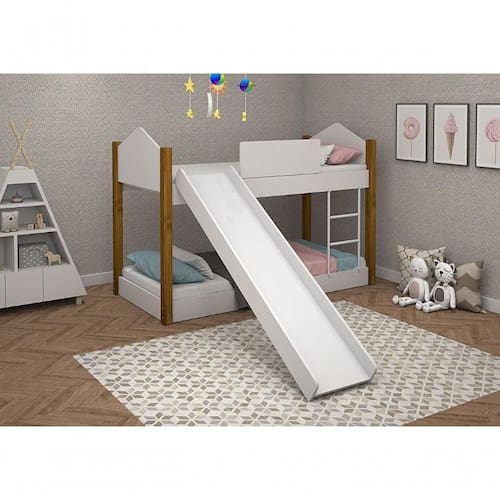 Beliche Infantil/Juvenil Luiza Branco/Mel com Pés de Madeira com Escorregador
