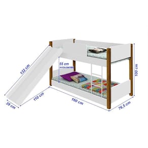 Beliche Infantil/Juvenil Valentina Branco com Pés de Madeira com Escorregador com 2 colchões
