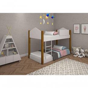 Beliche Infantil/Juvenil Luiza Branco/Mel com Pés de Madeira