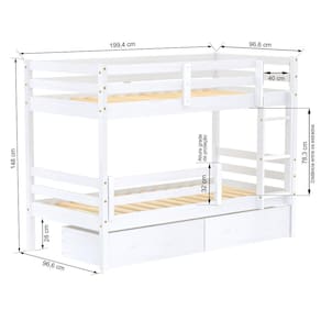 Diferenciais: Todo em Madeira, Escada Fixa, Grade de Proteção Dupla, Grade Removível, 02 Gavetas.