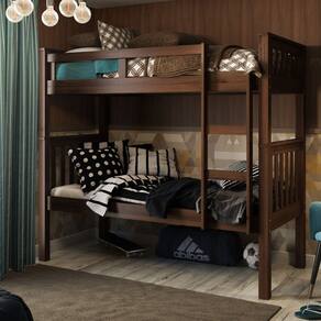 Caracteristicas: Acabamento em PU verniz Acompanha escada Estrados em madeira de pinus largura 20mm Estrutura em Madeira Macica de pinus 20 mm e Fundo compensado 4mm Tamanho do colchao indicado superior e inferior 88 cm x 188 cm