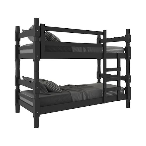 Beliche Madeira Maciça - Vira 2 Camas - Com Colchões Inclusos Porto Multimóveis Cr4159 Preto O Beliche Madeira Maciça - vira 2 Camas - com Colchões Inclusos Porto Multimóveis é um produto que une qualidade e versatilidade para atender às suas necessidades. Produzido 100% em madeira maciça (pinus) proveniente de reflorestamento, este beliche garante durabilidade e resistência, além de ser uma opção ecologicamente correta. Com barras reforçadas e suportando até 110kg, esse beliche oferece segurança e conforto para suas noites de sono. Ainda mais versátil, você pode utilizá-lo também como duas camas separadas. Possui dupla furação podendo ser utilizado para colchão de 78 ou 88cm. E não se preocupe: os colchões D23 com tratamento anti-ácaro e anti-alérgico estão inclusos, garantindo proteção à saúde durante seu descanso. As cabeceiras torneadas com espessura de 8,5 x 8,5cm trazem um toque sofisticado ao design do móvel. Invista em qualidade e praticidade para sua casa ou apartamento sem abrir mão do estilo que só essa peça proporciona. Conteúdo da Embalagem: 1 (uma) Beliche 2 (dois) Colchões Kit Ferragem Manual de Montagem