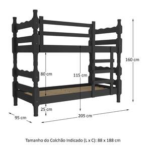 O Beliche Madeira Maciça - vira 2 Camas - para Colchão 78/88 x 188cm Porto Multimóveis é produzido 100% em madeira maciça proveniente de reflorestamento. Com cabeceiras torneadas (espessura de 8,5 x 8,5cm), possui barras reforçadas e suporta até 110kg. Super versátil, você pode utilizá-lo também como duas camas e, para facilitar, possui dupla furação podendo ser utilizado para colchão de 78 ou 88cm. Não acompanha colchões.