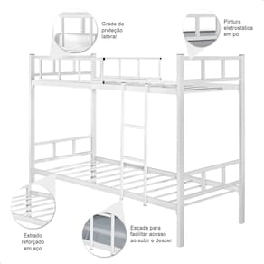 Produzida em aço galvanizado, estrado de ripas e sarrafos em madeira, o que garante maior resistência e durabilidade ao longo do tempo. Além de ser anticorrosiva, possui escada central e proteção lateral na parte superior, assegurando máxima proteção ao usuário. Enquanto O Colchão Solteiro Probel é feito com espuma D20, ele proporciona um suporte adequado e é indicado para quem prefere uma superfície de firmeza intermediária. Revestido em tecido de alta qualidade, com design compacto, é perfeito para camas de solteiro e oferece proteção, ideal para uso diário, este colchão é prático e oferece um descanso revigorante.