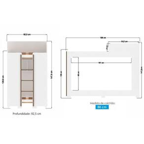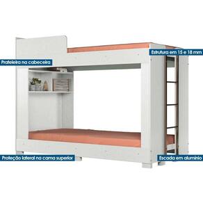 Material de Estrutura - MDF/MDP Estilo do Móvel - Moderno Tipo de Pintura - Ultravioleta Tipo de Acabamento da Pintura - Pintura Fosca Material do Estrado - Estrado de MDF Tamanho da Cama - Solteiro Tamanho do Colchão Indicado - Solteiro 88x188 Tamanho do colchão para usar no Beliche / Treliche - Solteiro 88x188 - Solteiro 88x188 Diferenciais das Camas - Escada Lateral - Proteção Lateral - Escada Metálica Suporte de Peso - 80 kg