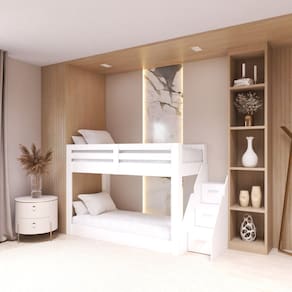 A Beliche Montessoriano Solteiro Adulto, possui um estilo neutro e clean, o que permite ser sempre atual, podendo se associar a diferentes estilos, tendências e faixas etárias. O móvel perfeito para quarto pequeno, e ideal para uma criança e um adulto ou dois adultos.