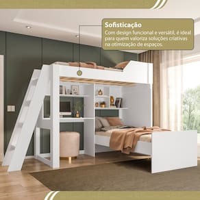 Transforme o quarto das crianças ou adolescentes com a Beliche Office Vivace, uma solução inteligente que une conforto, praticidade e design moderno. Este móvel multifuncional oferece duas camas de solteiro dispostas em beliche, para um melhor aproveitamento do espaço.