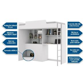 Material de Estrutura - MDF/MDP Tipo de Pintura - Ultravioleta Tipo de Acabamento da Pintura - Semi Brilho Diferenciais dos Móveis de Quarto - Móvel c/ Baú Tamanho da Cama - Solteiro Diferenciais das Camas - Escada Lateral - Proteção Lateral - Escada Metálica