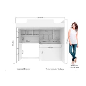 Beliche Multifuncional Office New (Cama+Escrivaninha de CPU+Baú+Nicho+Prateleiras) Branco - Santos Andirá