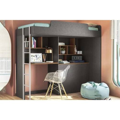 Beliche Multifuncional Office New (Cama+Escrivaninha de CPU+Baú+Nicho+Prateleiras) Grafite/Jatobá - Santos Andirá