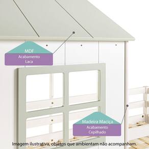 A cama superior conta com grade em todo seu redor e uma escada com 3 degraus na lateral. Conta também com um lindo telhado casinha com janela, estimulando a imaginação das crianças. O escorregador garante maior diversão nas brincadeiras. A estante montessoriana é perfeita para colocar objetos e brinquedos. Já que sob a cama alta fica uma cama queen montessoriana. A cama queen não tem cabeceira, portanto é discreta, não deixa o ambiente pesado e tumultuado. A cama da parte inferior com estrutura montessoriana, estimula a independência da criança, deixando-a descobrir por si só os primeiros passos e obstáculos, de forma segura, onde ela sozinha irá subir e descer da cama. Uma peça ideal para trazer o lúdico, a diversão e a segurança para os dias e noites das crianças.