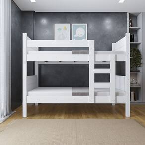 Beliche Resistente Fortaleza em Mdf Vira 2 Camas Solteiro Branco - Beliche em MDF