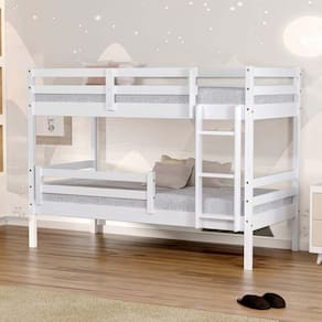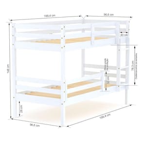 Se você está procurando por um beliche de madeira maciça, que seja durável e ofereça proteção, então você veio ao lugar certo. Estamos orgulhosos de oferecer um beliche de madeira maciça com uma grade de proteção, feita com materiais de alta qualidade. DETALHES Acabamento:Branco UV (pode mostrar veios da madeira) Estrutura:Madeira Maciça de Pinus de Reflorestamento Medidas dos Colchões da Cama de Solteiro (cm x cm):188x88 (Não Incluso) Peso Suportado Cama de Solteiro:120 Kg Diferenciais:Todo em Madeira, Escada Fixa, Grade de Proteção Dupla, Grade Removível.