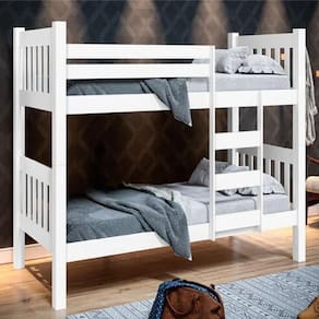 possui um design moderno e sofisticado agregando charme e beleza ao ambiente. Com sua estrutura reforçada, proporcionando qualidade e durabilidade. Para maior segurança ela acompanha proteção lateral na cama superior e escada. Além disso a beliche pode ser montada em duas camas de solteiro podendo ser usada da maneira que preferir e se adequando melhor em seu lar. Ideal para colchão de 0,88x188cm.