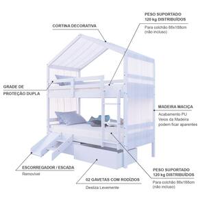 Diferenciais: Escada Fixa, 02 Gavetas, Kit Escada/Escorregador e Casinha Decorativa, Cortina.