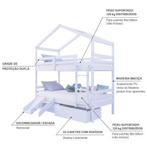 Diferenciais: Escada Fixa, 02 Gavetas, Kit Escada/Escorregador e Casinha Decorativa.