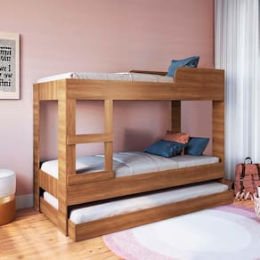 Itens inclusos: 1 beliche solteiro, 1 cama auxiliar e 3 colchões solteiro