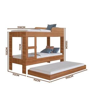 Dimensões da beliche: Largura 93 cm; Profundidade 194 cm; Altura 150 cm.