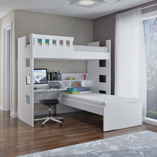 +A+Beliche+com+Escrivaninha+e+Grade+de+Prote%E7%E3o+Foscarini+%E9+ideal+para+colch%F5es+de+solteiro+de+88+x+188+cm.+%C9+produzida+100%25+em+MDF%2C+com+acabamento+UV+fosco%2Ftexturizado+o+que+garante+brilho+e+prote%E7%E3o+em+toda+a+superf%EDcie+do+m%F3vel.+Seu+sistema+de+montagem+%E9+realizado+atrav%E9s+de+parafusos%2C+minifix+e+cavilhas.+Sua+estrutura+principal+%E9+de+25mm+com+detalhes+em+15mm.+Medidas+montado+%28A+x+L+x+P%29%3A+192+x+195+x+195+cm.+Ideal+para+otimizar+o+espa%E7o+do+seu+quarto.+Aproveite%21 Acabamento: Pintura UV Acompanha Cama Auxiliar: Não Acompanha Colchão: Não Altura: 182 cm Altura do Estrado até o Chão: 135 cm Altura do Estrado Superior até o Chão: 145 cm Altura dos Pés: 182 cm calculo: unidade Complexidade da Montagem: Média: pode ser montado por mais de uma pessoa e/ou necessite de maior conhecimento para montagem Cr: Branco Cr do Produto: Branco Escala de Brilho: Fosco Estilo: Moderno Itens Inclusos: Beliche Escrivaninha e manual de montagem Itens Inclusos: 1 Beliche Escrivaninha e Manual de Montagem Largura: 195 cm Manual de Montagem e Instalação: https://cdn2.madeiramadeira.com.br/atributo/moveis-foscarini/348677-u231681-beliche-cama-turca-e-grade.pdf Material da Escada: MDF Material do Estrado: MDF Material Principal: MDF Montagem Flex: Necessita Montagem: Sim Número de Camas: 02 Origem do Produto: Nacional Permite a Utilização de Cama Auxiliar: Sim Peso: 190 kg Peso Suportado por cada cama: 100 kg Possui Gavetas: Não Possui Pés: Não Possui Portas: Não Possui Prateleiras: Não Profundidade: 195 cm Recomendações de Uso, Manutenção e Limpeza: Limpar com flanela ou pano macio seco, não utilizar produtos abrasivos, desengordurantes, álcool ou solvente. Não expor o produto diretamente à luz solar e à umidade. Sapatas Niveladoras: Não Sistema de Montagem: Parafusos, minifix e cavilhas. status-cadastro: Aprovado Suporta Até (kg): 220 kg Tamanho: Tamanho do Colchão Indicado (L x C): 88cm x 188cm Tipo de Colchão: Solteiro Tipo de Estrado: Removível Trava de Segurança: Não