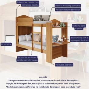 Medida do colchão da cama: 0,88x1,88m (altura recomendada máxima de 16cm)
