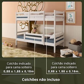 Dimensões do beliche de solteiro montado: Comprimento (cm): 198 Altura (cm): 153 Largura (cm): 98