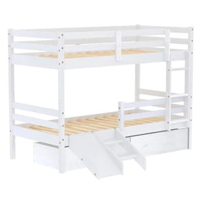 Beliche Solteiro Dreams Com 02 Gavetas Grade De Proteção E Mini Escada/ Escorrega Madeira Maciça Branco Megamobilia